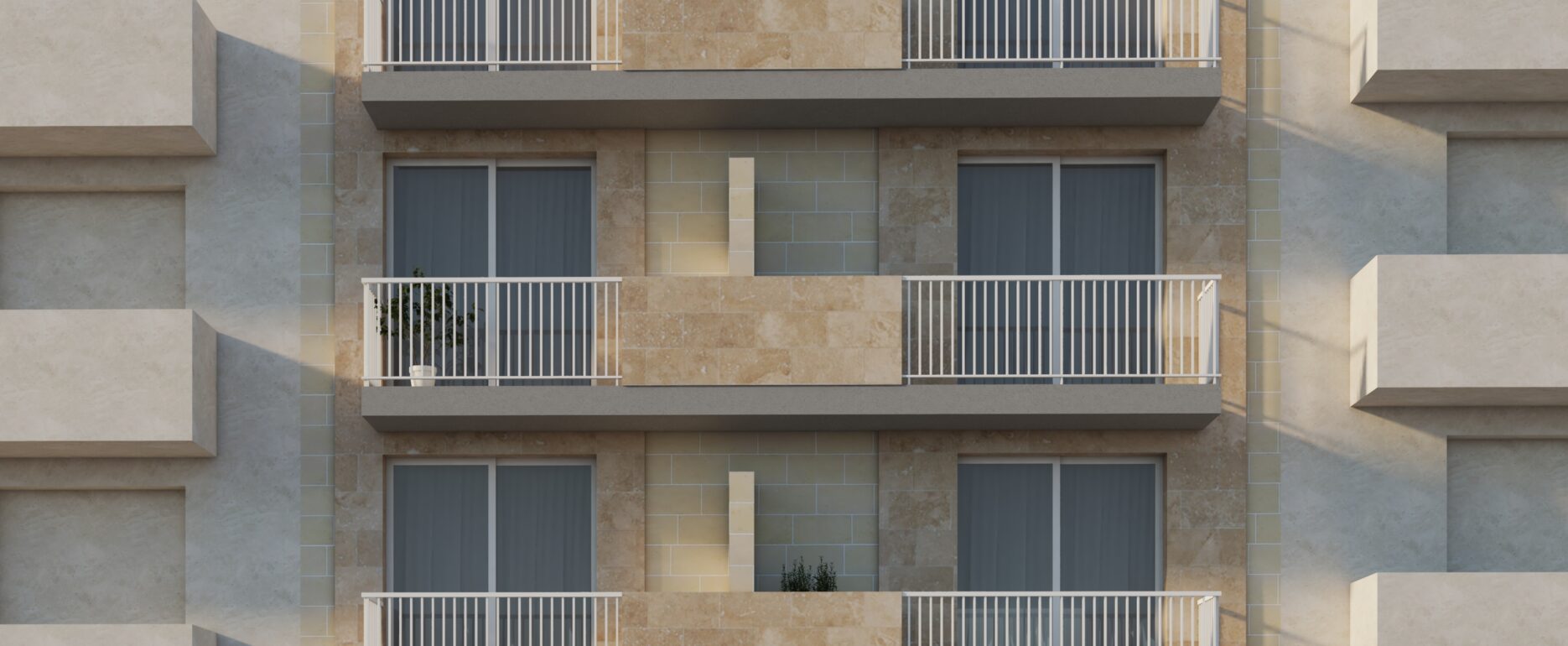 Doonside Court, an upcoming residential apartment block in the heart of Kercem. Offering a total of nine units, these modern apartments boast comfortable living areas ranging from 130 to 135 square meters, ensuring practical living. Designed with contemporary living in mind, each apartment will feature a box room, wash room, pantry and three bathrooms.